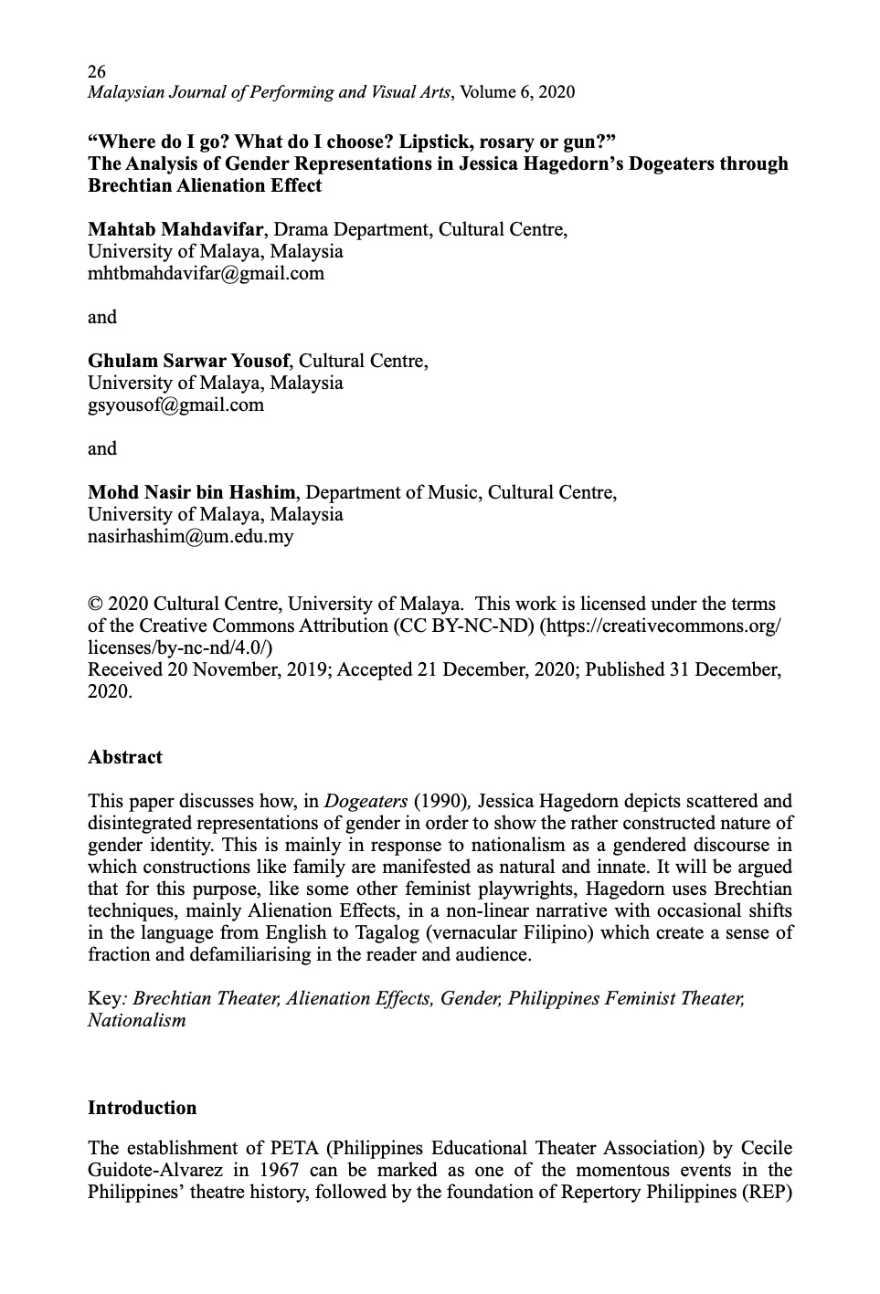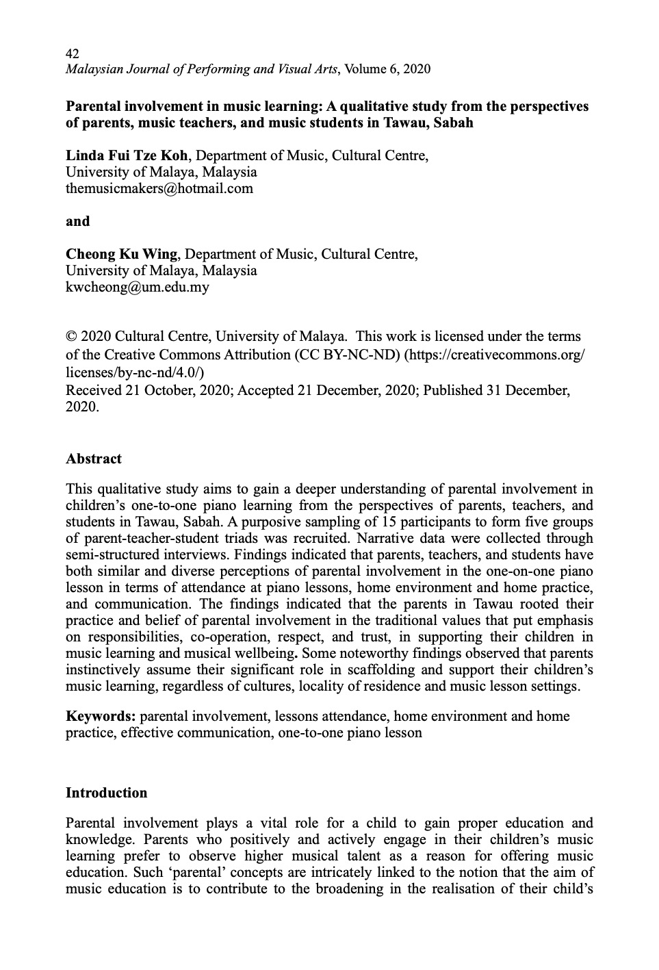 Vol. 6 (2020): Malaysian Journal of Performing and Visual Arts